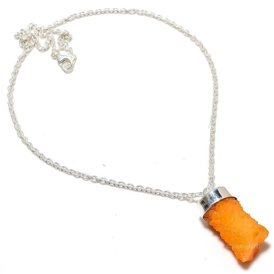 Natural Orange Druzy Gemstone 925 Sterling Silver Chain Necklace For Girls