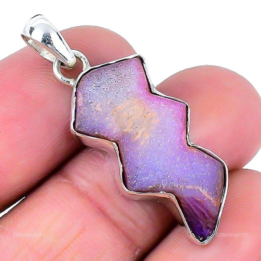 Gift For Her 925 Sterling Silver Natural Pink Druzy Gemstone Jewelry Pendant