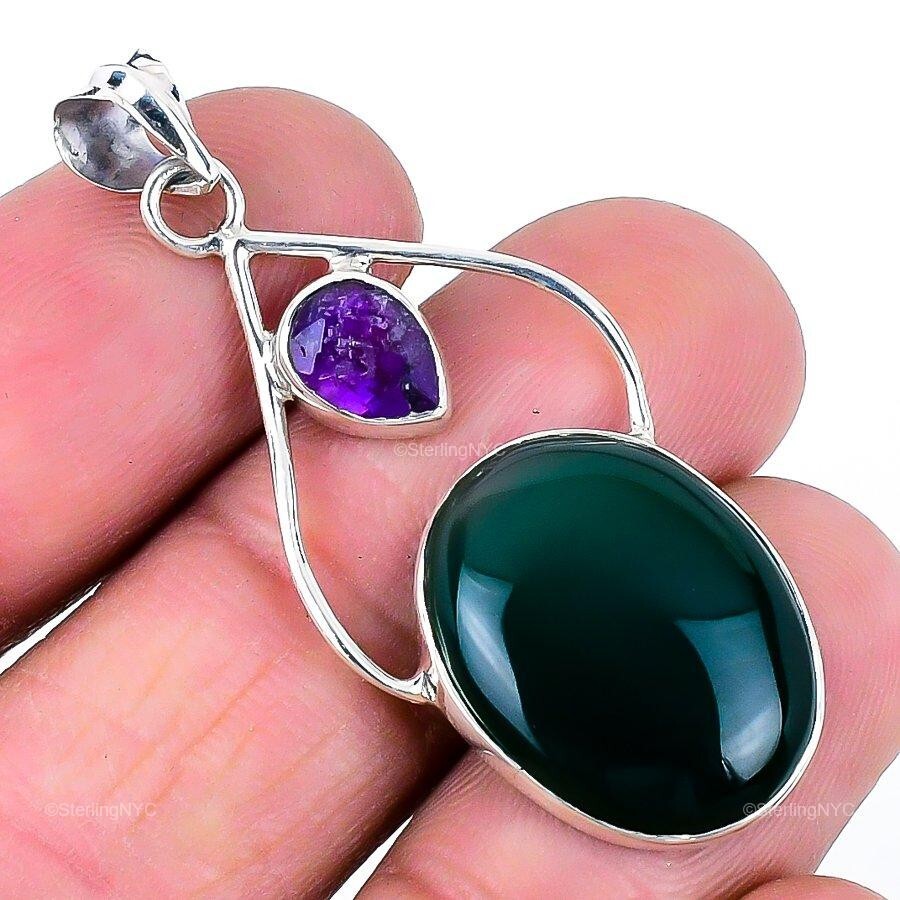 Natural Green Onyx Gemstone Pendant 925 Sterling Silver Indian Jewelry For Girls