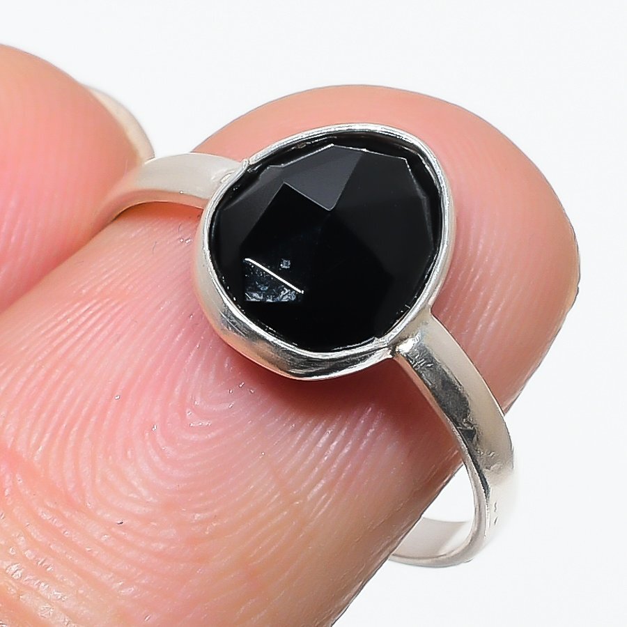 Black Onyx Gemstone Handmade 925 Solid Sterling Silver Jewelry Ring Size 8