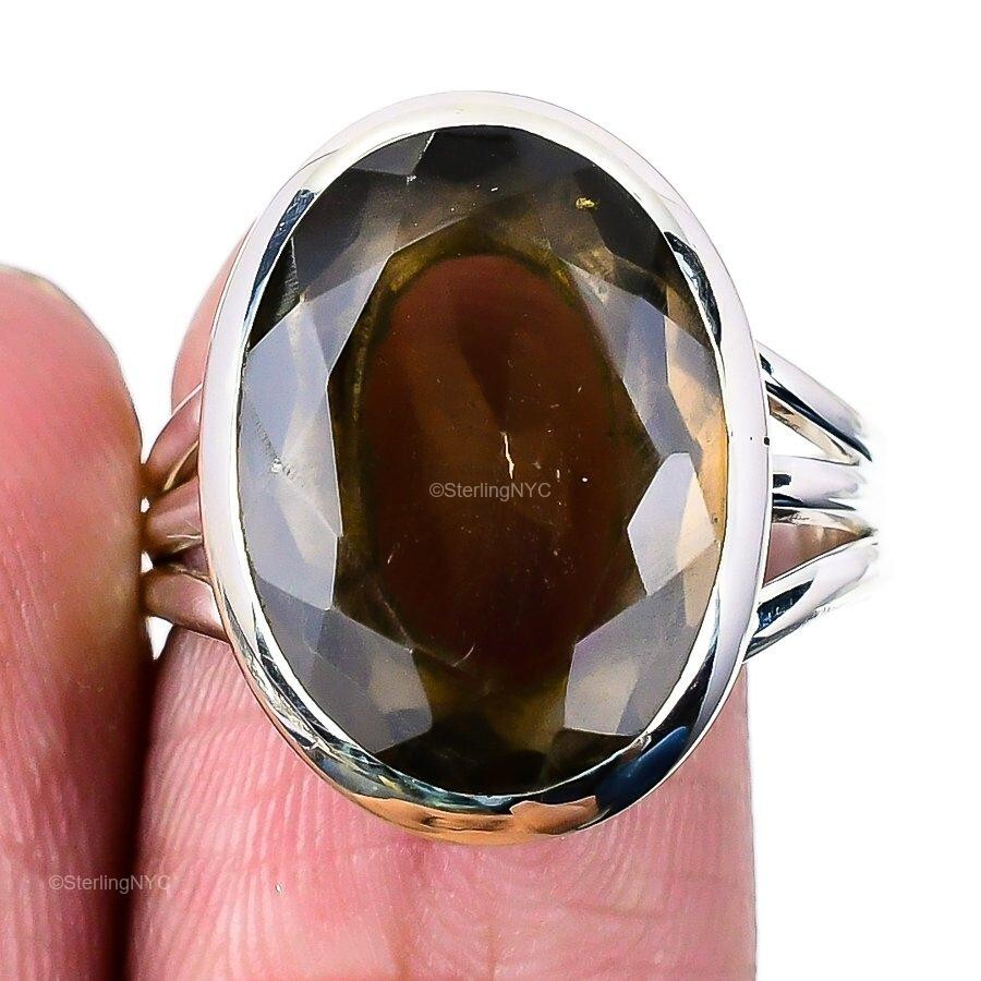 Gift For Women Statement Ring Size 8.5 925 Silver Natural Smoky Topaz Gemstone