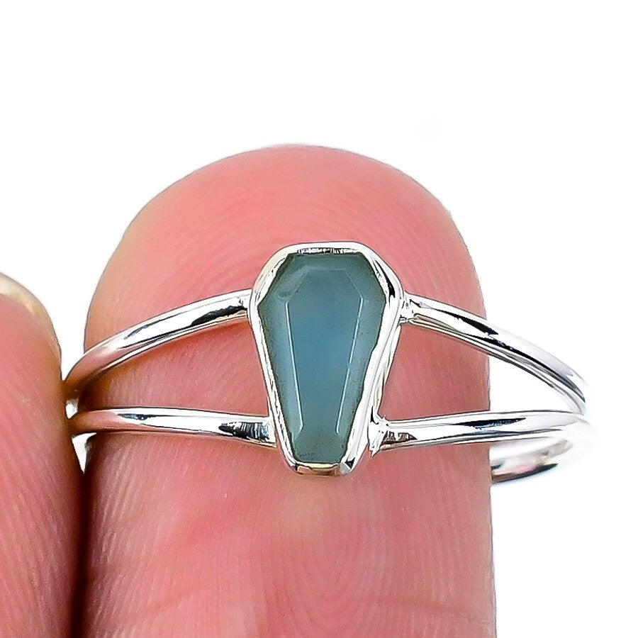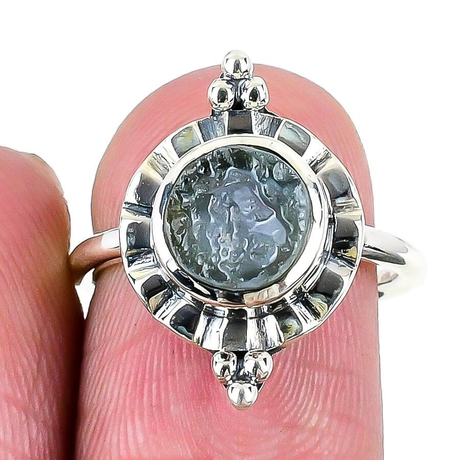 Aquamarine drusy Stone Solid Sterling Silver Statement Wife Ring Jewelry Size 7