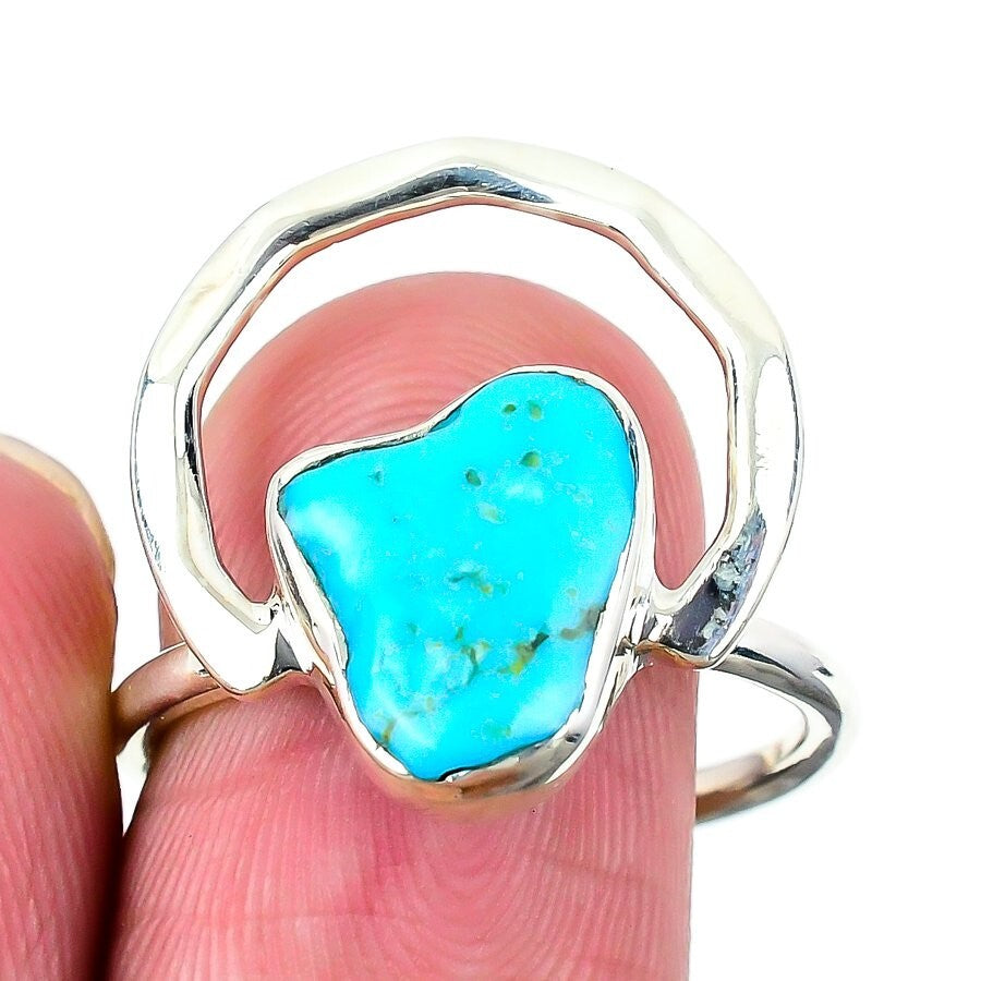 Natural Arizona Turquoise 925Ā SolidĀ Silver Statement Mother Handmade Ring US 10