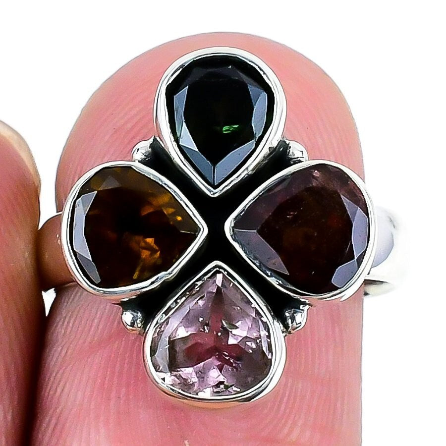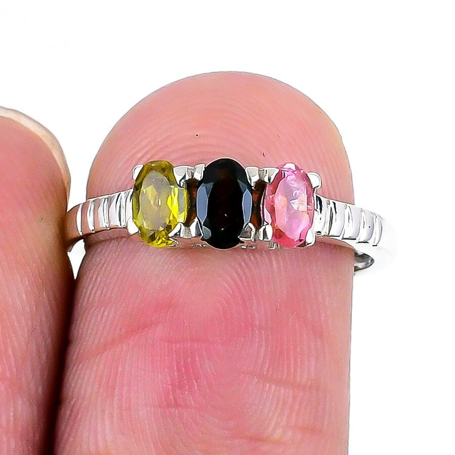 Natural Multi Tourmaline 925 Silver Sister Elegant Statement Birthday Ring US 7