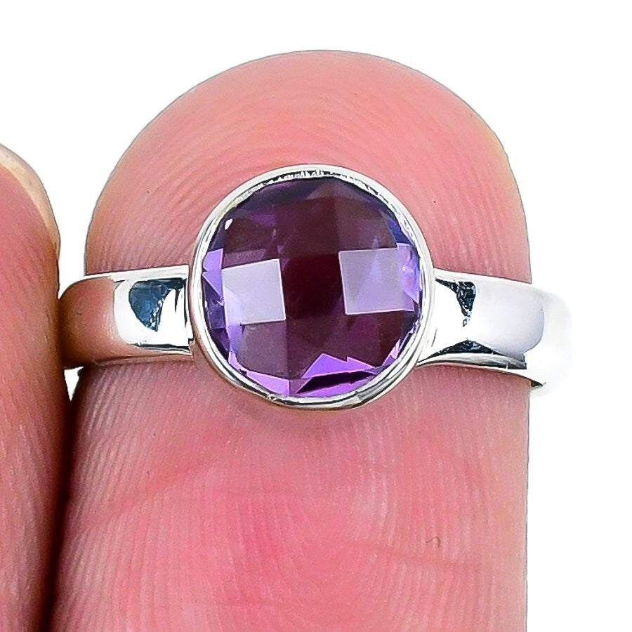 Amethyst Stone February Birth Elegant Statement Daughter Ring Solid Silver US 7
