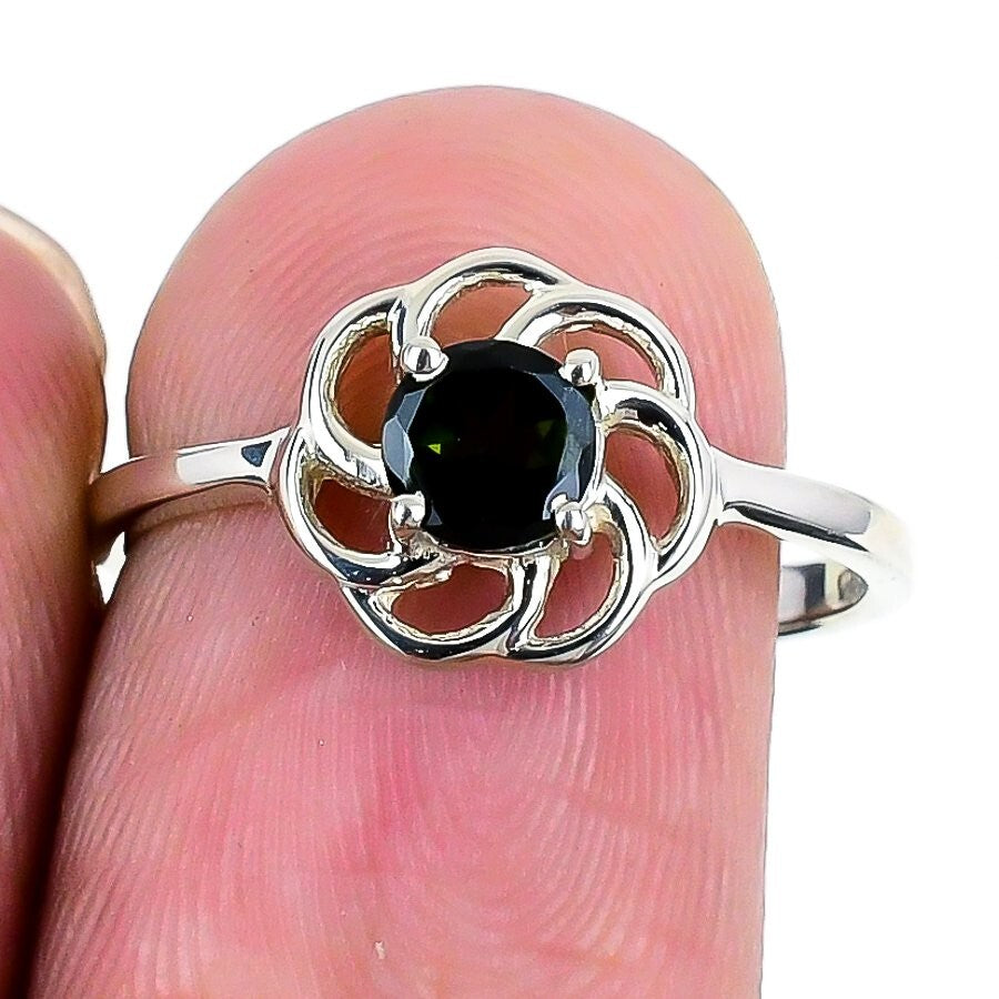 Chrome Diopside Stone 925 Silver Channel Set Statement Mother Ring Jewelry US 8