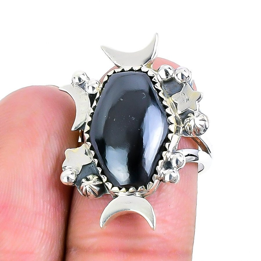 Natural Hematite 925 Sterling Silver Wife Cluster Art Deco Ring Jewelry Size 6.5