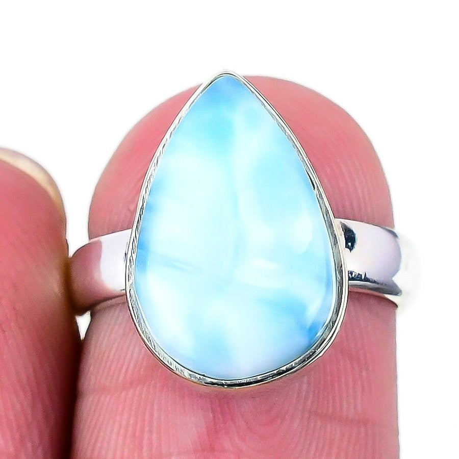 Republic Larimar Gemstone Sterling Silver Art Deco Cluster Ring Jewelry Size 5.5