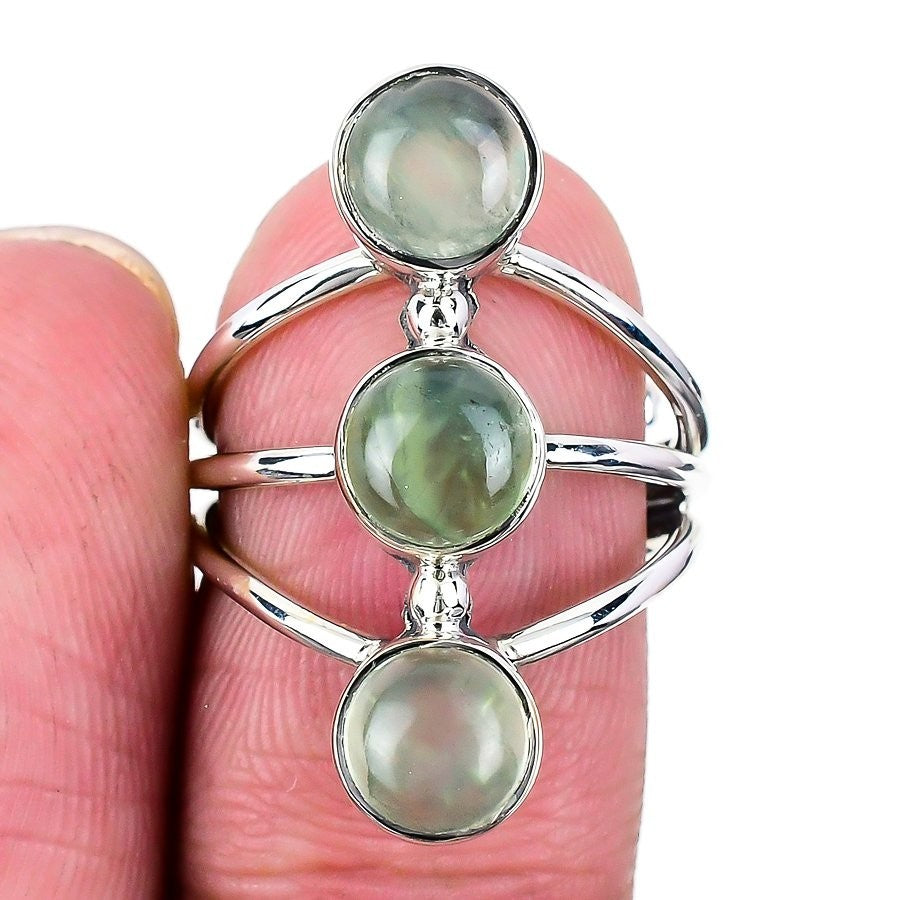 Natural Prehnite 925�Solid�Silver Cluster Engagement Channel Set Ring Jewelry