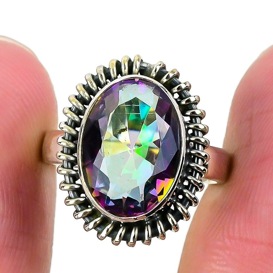 Mystic Rainbow Topaz Gemstone Boho Statement Ring Jewelry 925Ā SolidĀ Silver US 7