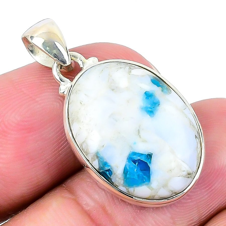 Neon Blue Apatite Stone Mother Throat Chakra Birthday Pendant Jewelry 925 Silver
