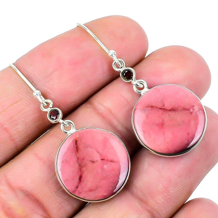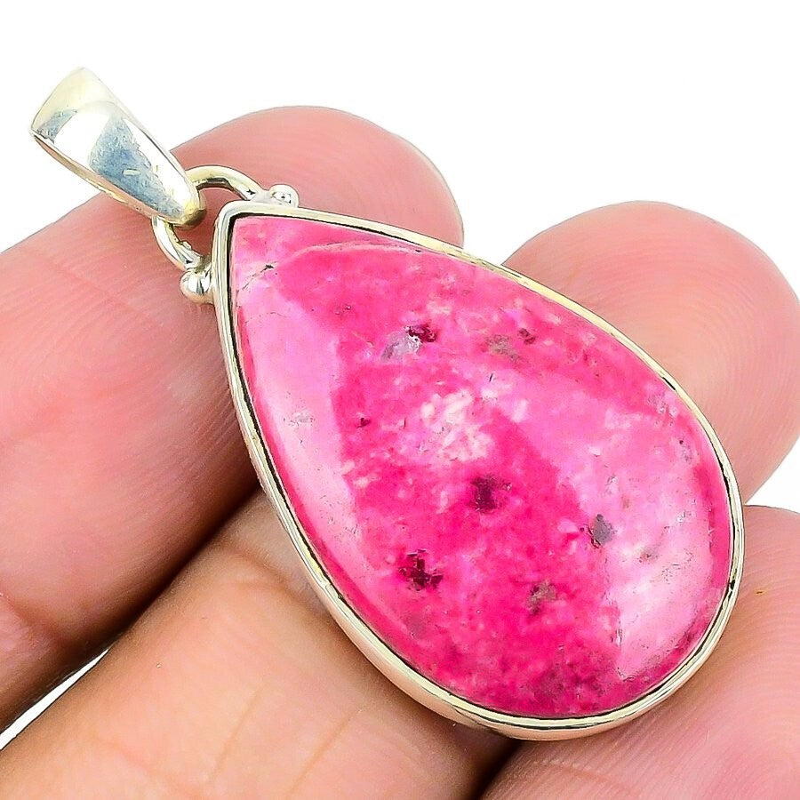 Pink Thulite Gemstone 925Ā SolidĀ Silver Trendy Art Deco Boho New Pendant Jewelry
