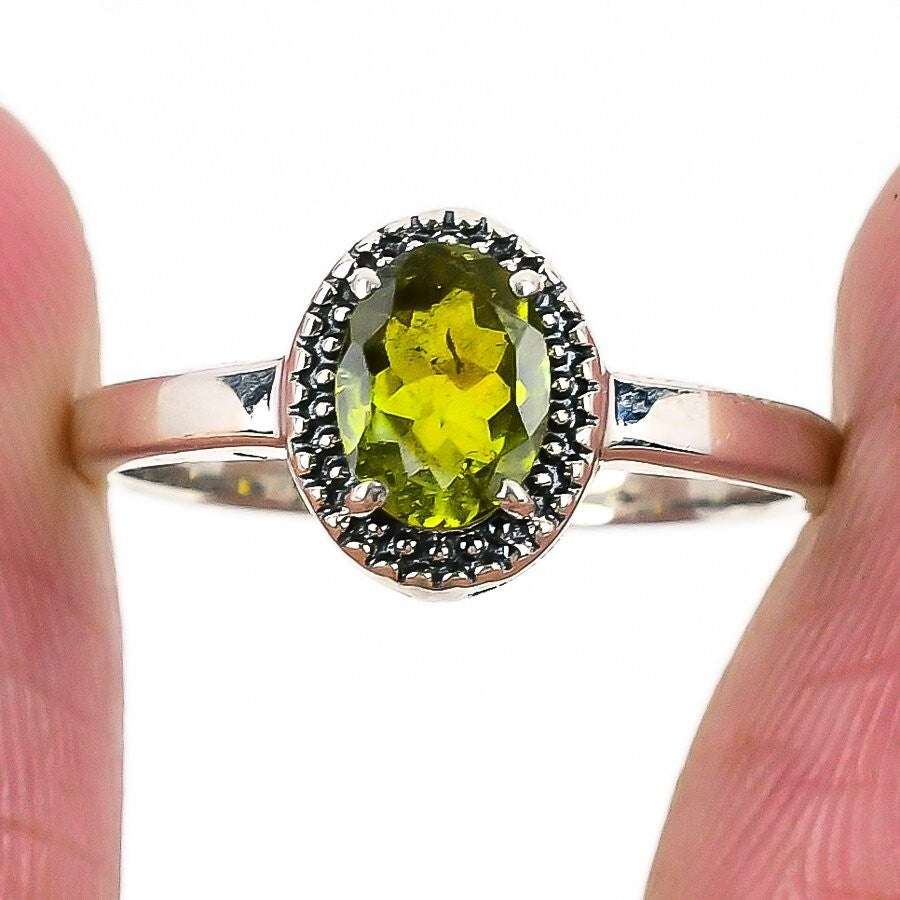 Peridot Stone 925 Silver Birthday Statement Ethnic Engagement Ring Jewelry US 7
