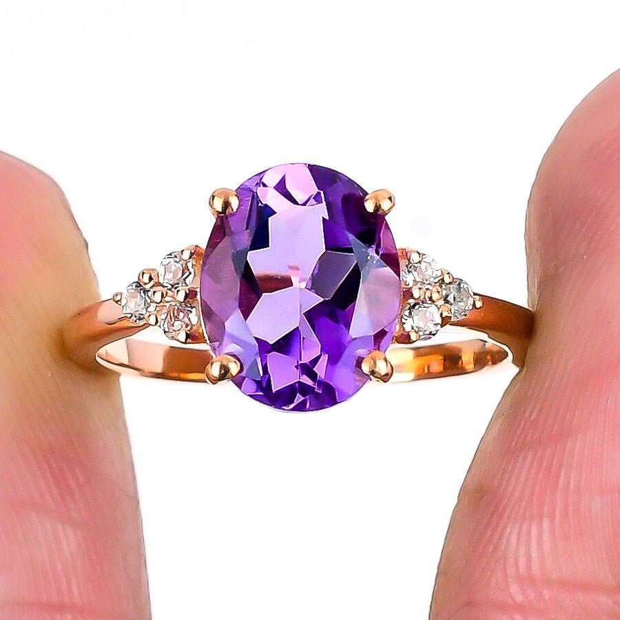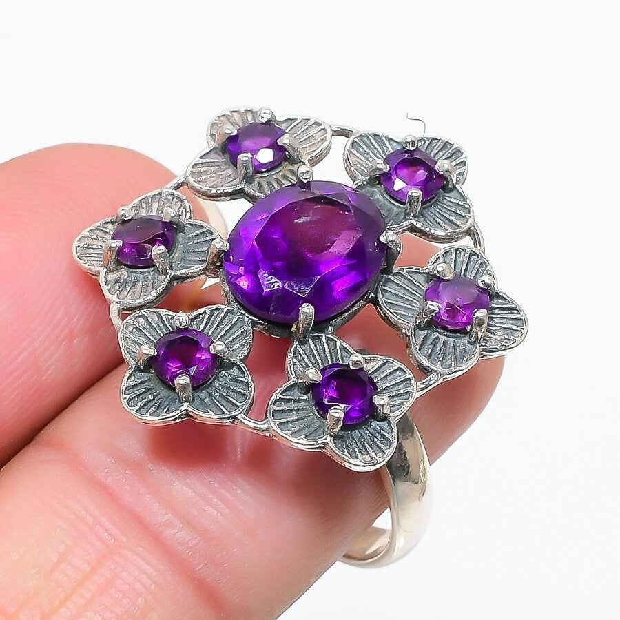Natural Pink Amethyst 925Ā SolidĀ Silver February New Statement Ring Jewelry US 7