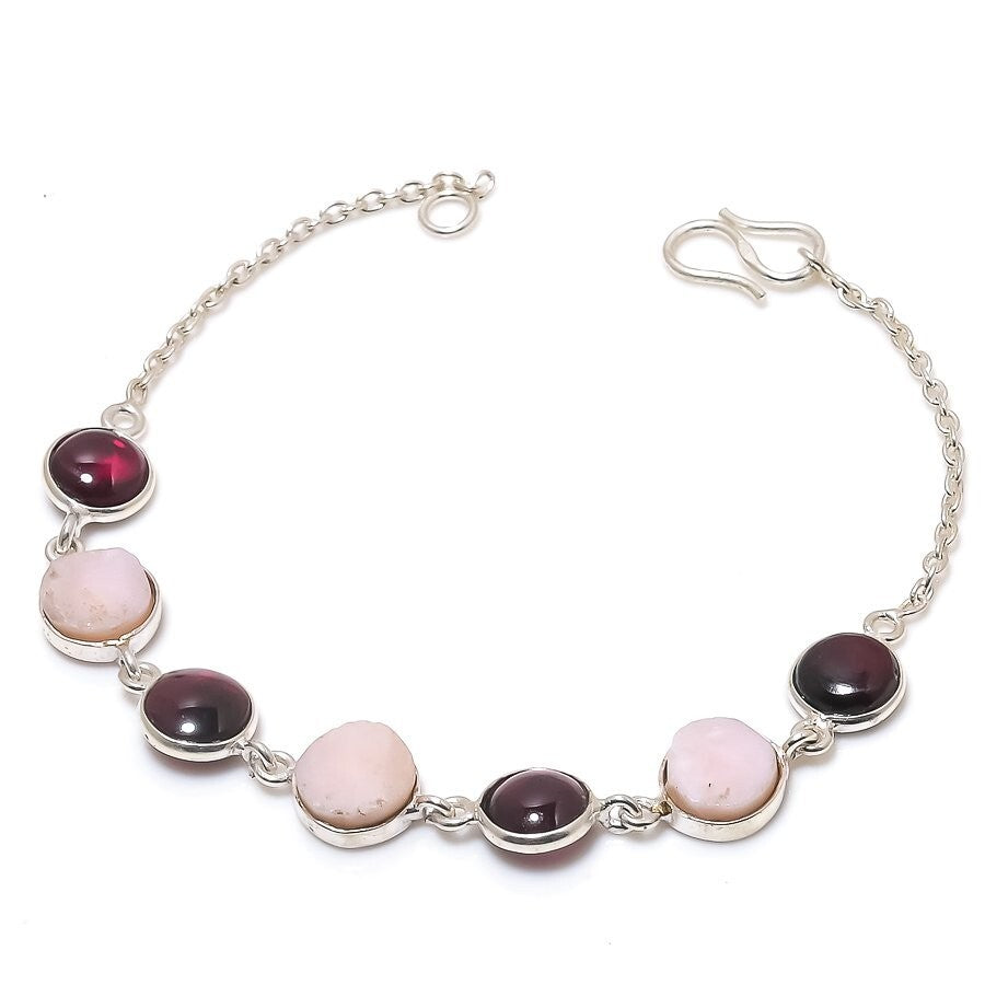 Natural Pink Opal 925 Sterling Silver Mother Chain Boho Wedding Bracelet Jewelry