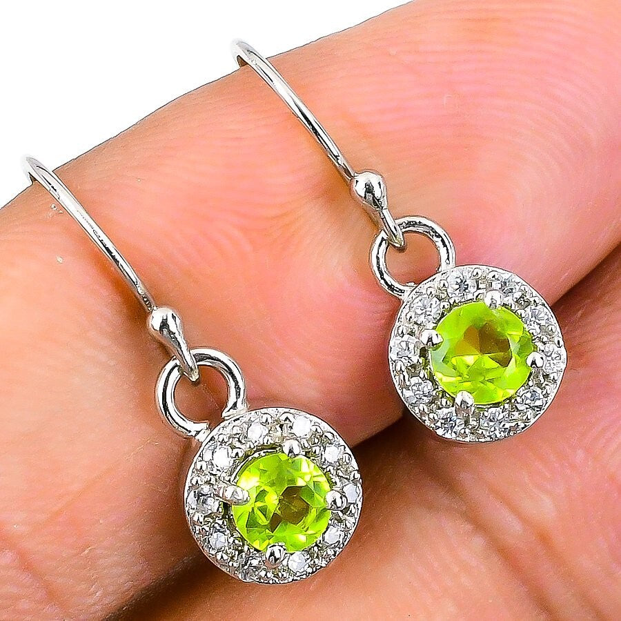 August Birth Peridot Stone Sterling Silver Sister Anniversary Dangle Earrings