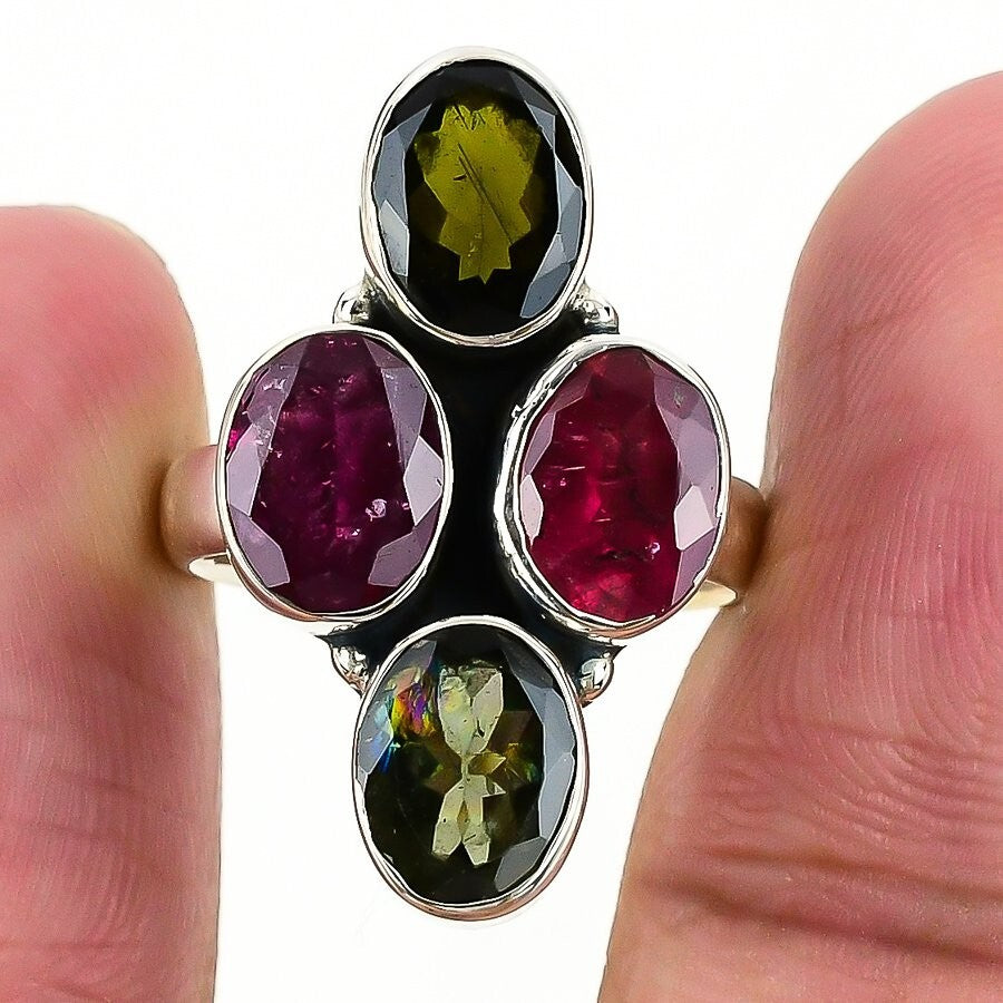 Heart Chakra Pink Tourmaline Stone 925 Silver Artisan Statement Mother Ring US 8