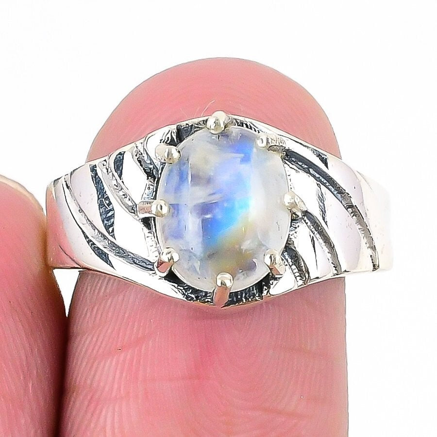 Natural Rainbow Moonstone Mother Statement Ethnic Ring Jewelry 925 Silver US 7