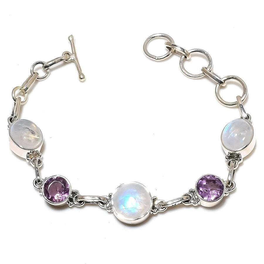 Rainbow Moonstone Stone 925 Sterling Silver Wife Chain New Bracelet Jewelry US 7