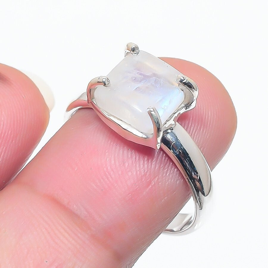 Natural Rainbow Moonstone Sterling Silver Trendy Statement Mother Ring Jewelry