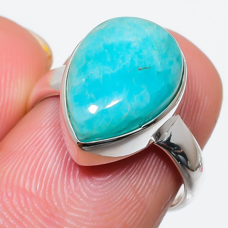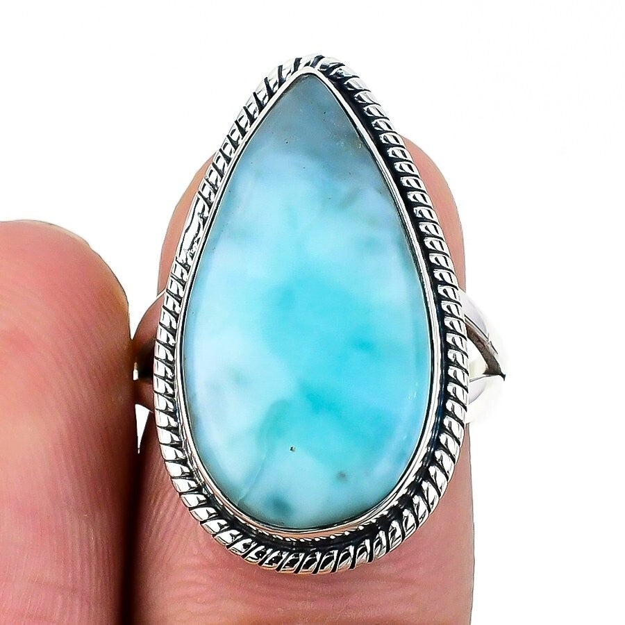 Republic Larimar Stone 925Ā SolidĀ Silver Statement Handmade Ring Jewelry Size 7