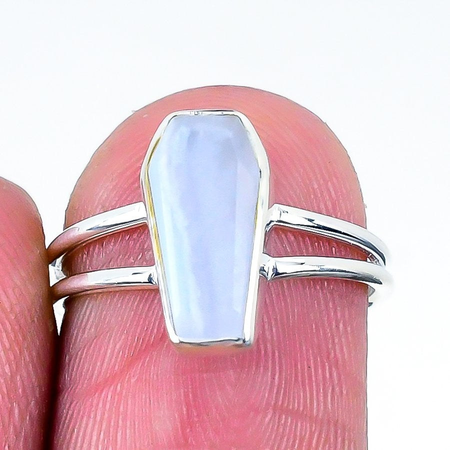Blue Lace Agate Gemstone Sterling Silver Statement Boho Band Ring Jewelry Size 6