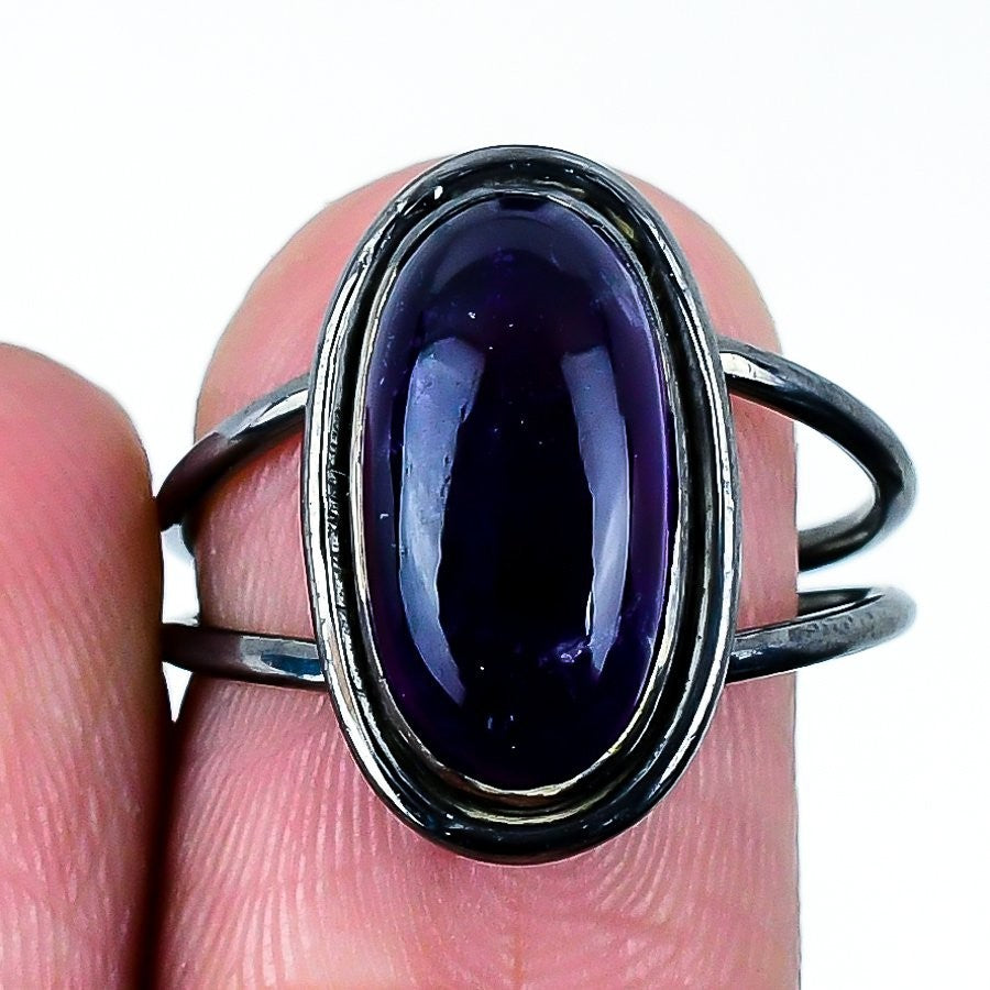 Sage Amethyst Stone 925 Silver Engagement Promise Band Crown Chakra Ring Size 8