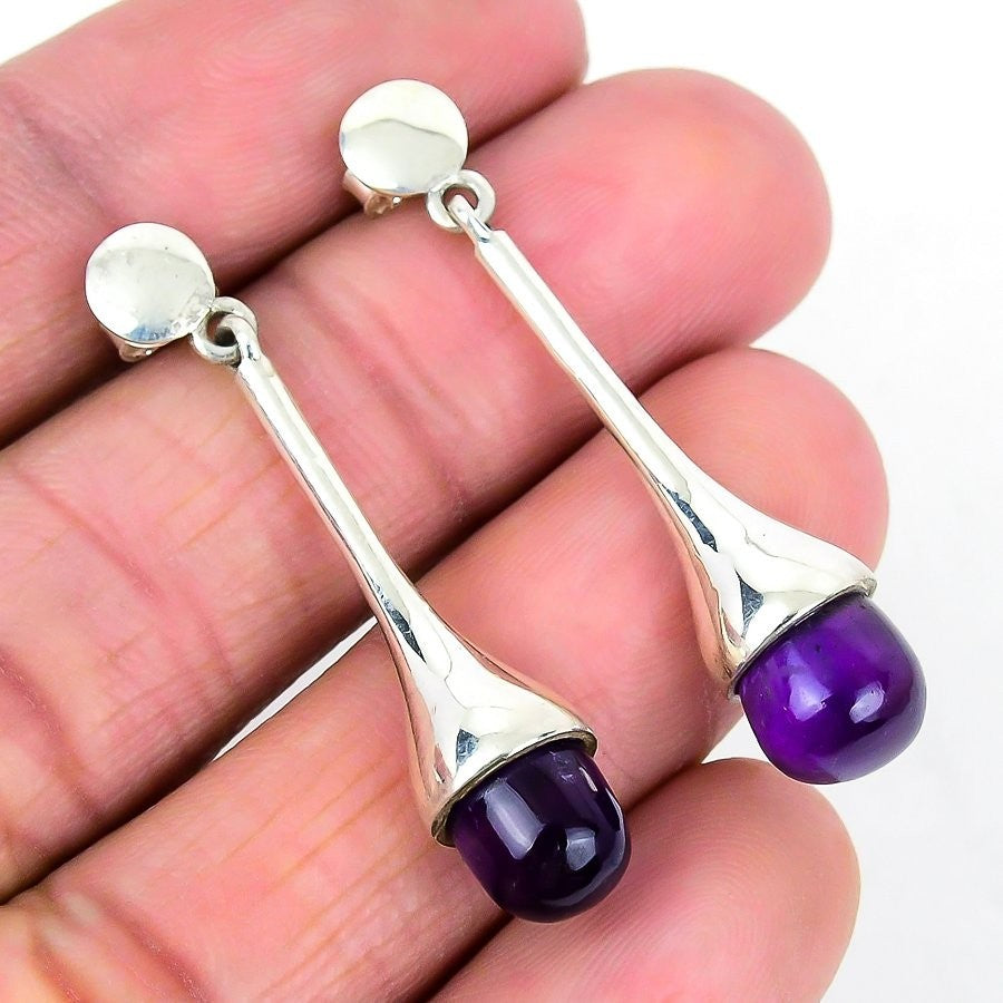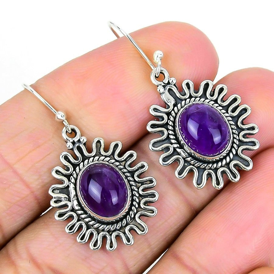 Natural Sage Amethyst 925 Silver Hook Daughter Dangle Unique Ethnic New Earrings