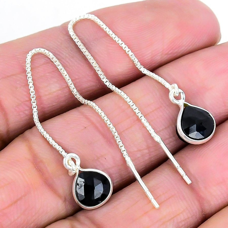 Sisters Day Sale Natural Black Spinel Drop Dangle Earrings Solid Sterling Silver