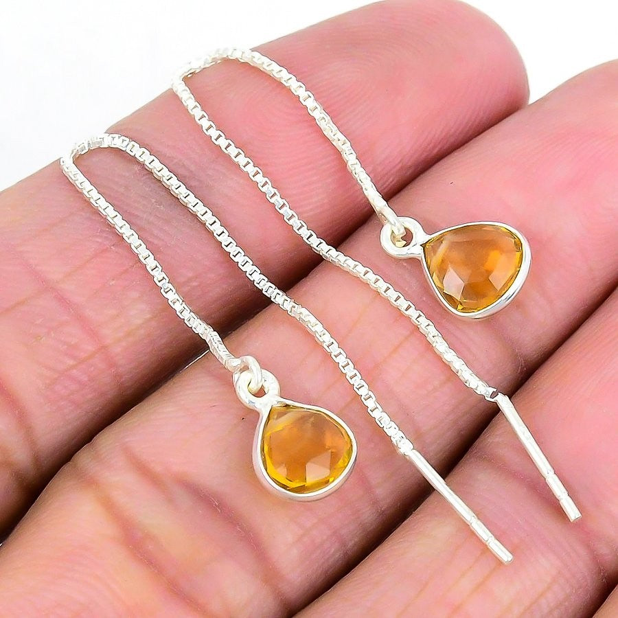 Citrine Gemstone 925�Solid�Silver Channel Set Hook Unique Dangle Sister Earrings