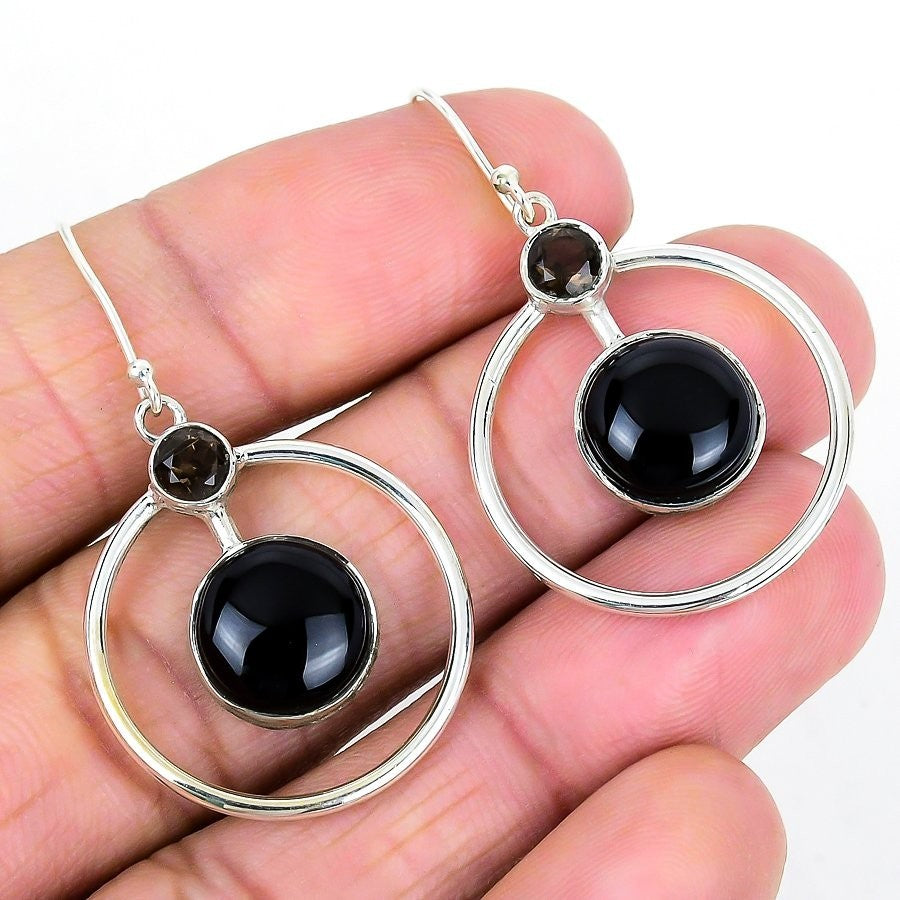 Black Onyx Stone 925 Sterling Silver Dangling Ethnic Unique Root Chakra Earrings