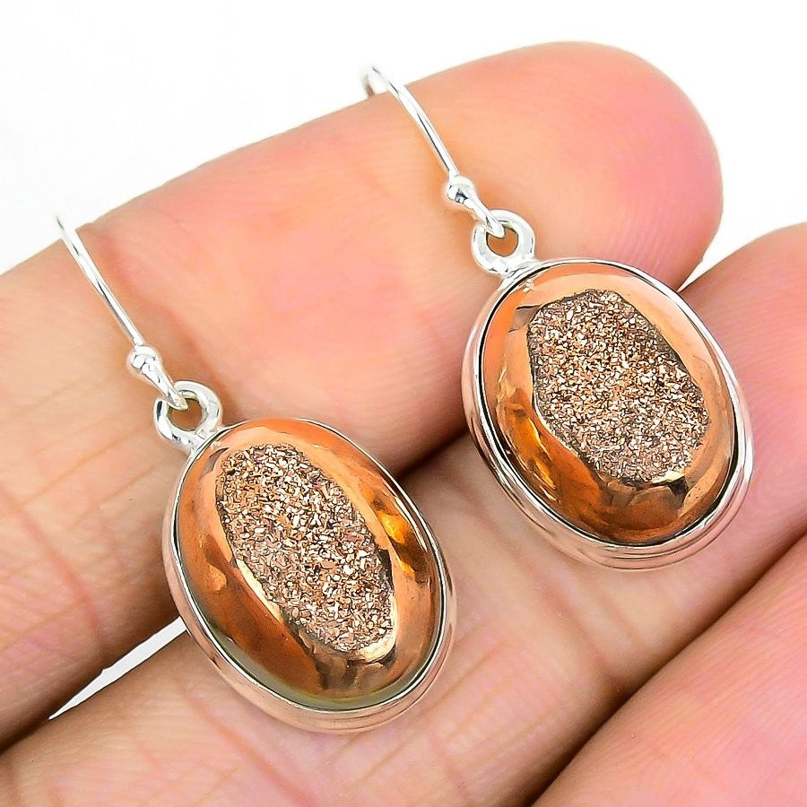 Natural Golden Titanium Druzy Solid Silver New Dangle Mother Earrings Jewelry