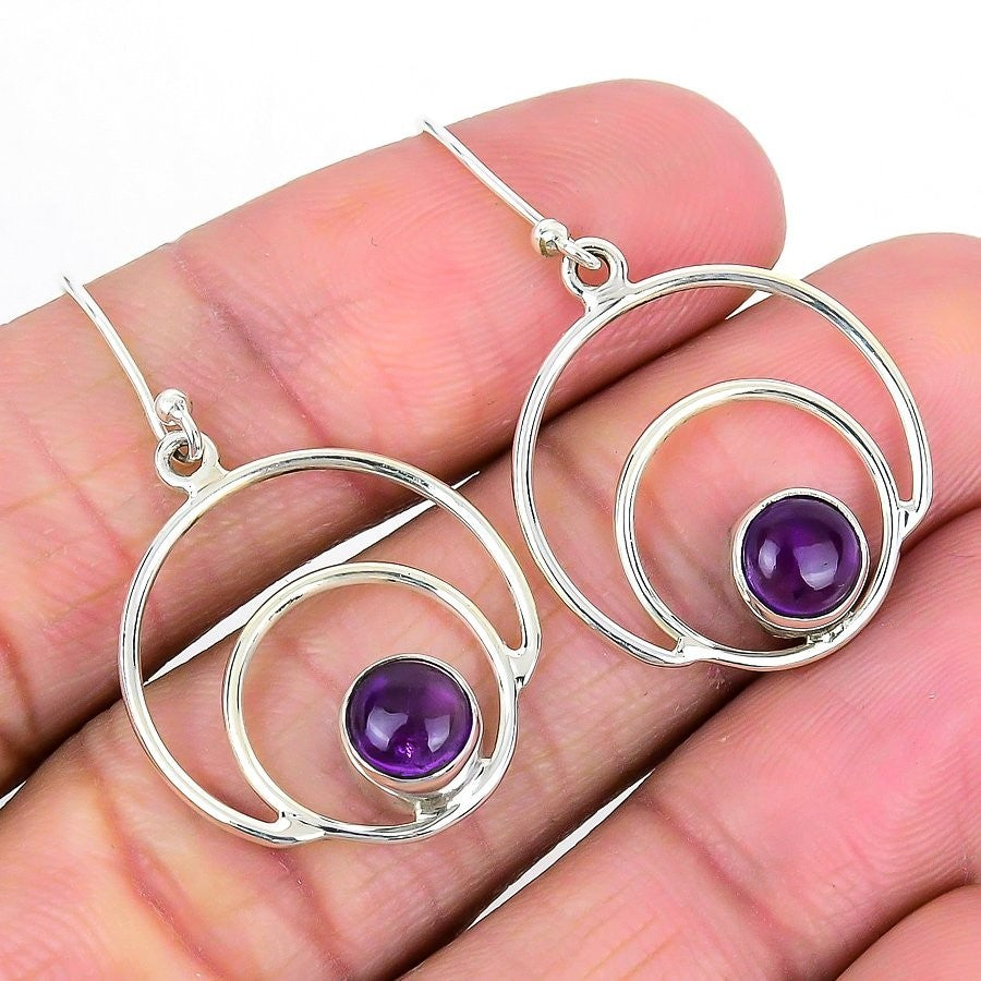 Sage Amethyst Gemstone 925 Silver Drop Dangle Friendship Day Sister New Earrings