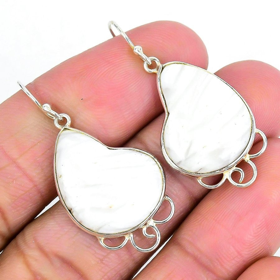 Scolecite Stone 925 Silver Engagement Friendship Day Unique Dangle Drop Earrings