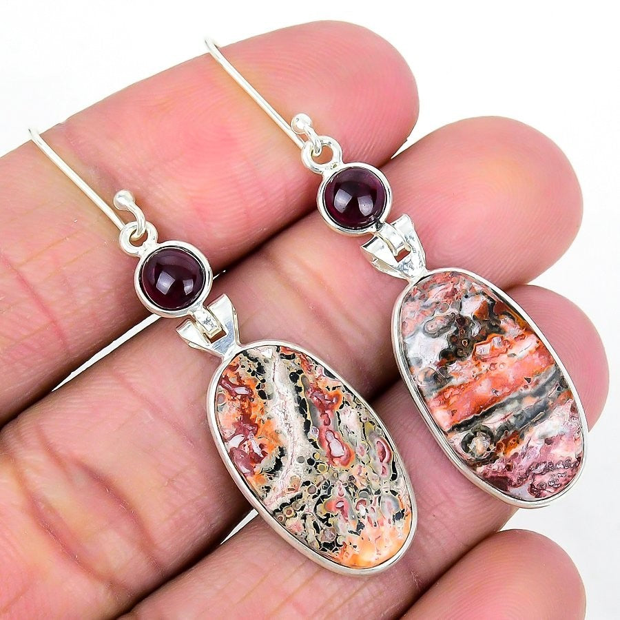 Orange Lace Agate Gemstone 925�Solid�Silver Engagement Hook Dangling Earrings