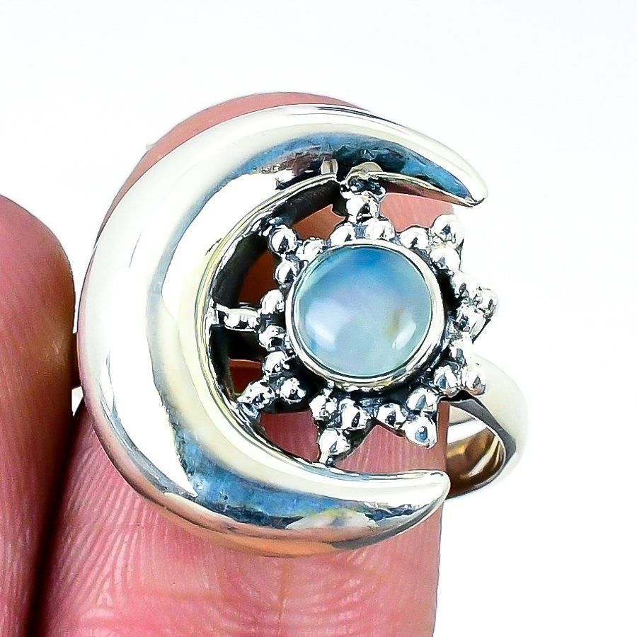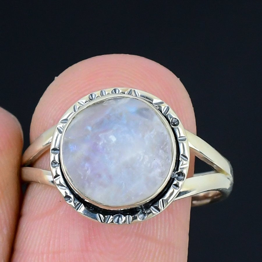 Rainbow Moonstone Stone 925 Silver Wife Band Statement Sisters Day Ring Jewelry