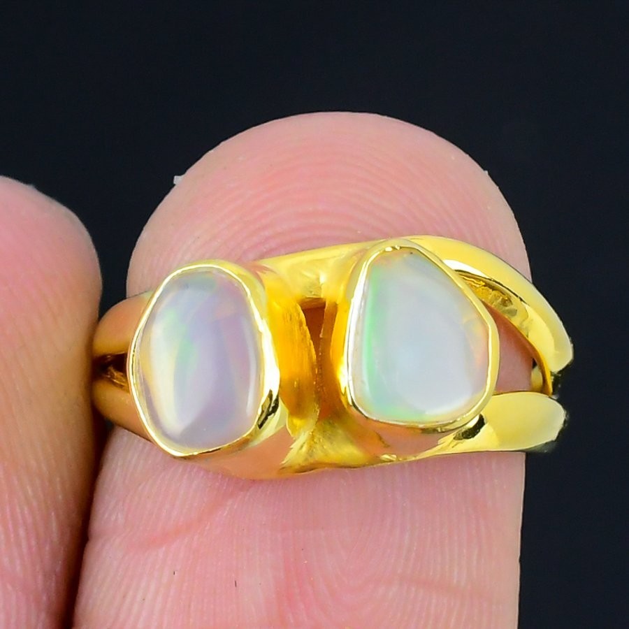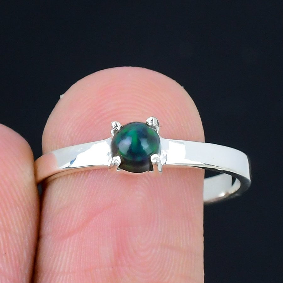 Natural Ethiopian Opal Solid Sterling Silver Band Best Friend Gift New Ring US 6