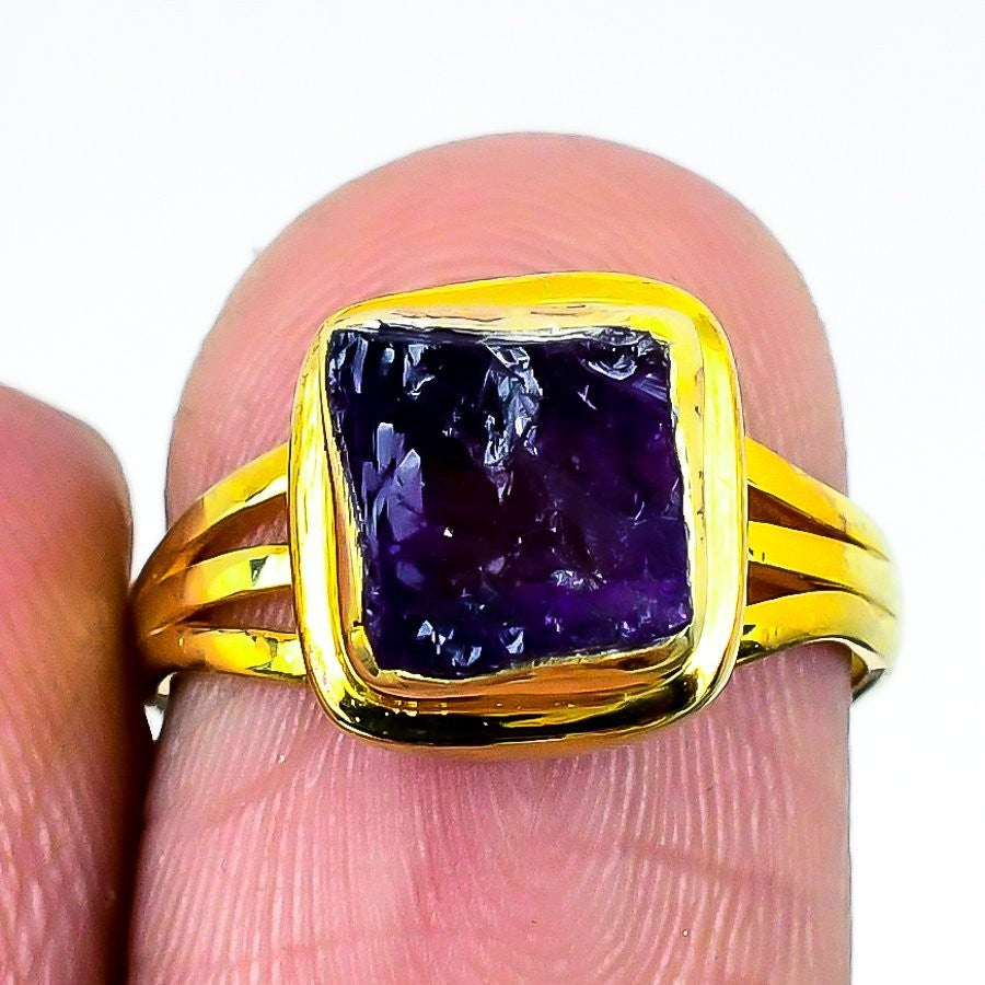 Sage Amethyst Gemstone Promise Band Handmade Ring Jewelry Sterling Silver US 10