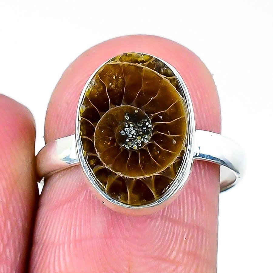 Natural Ammonite Fossil New Band Anniversary Ring Jewelry Sterling Silver US 7.5