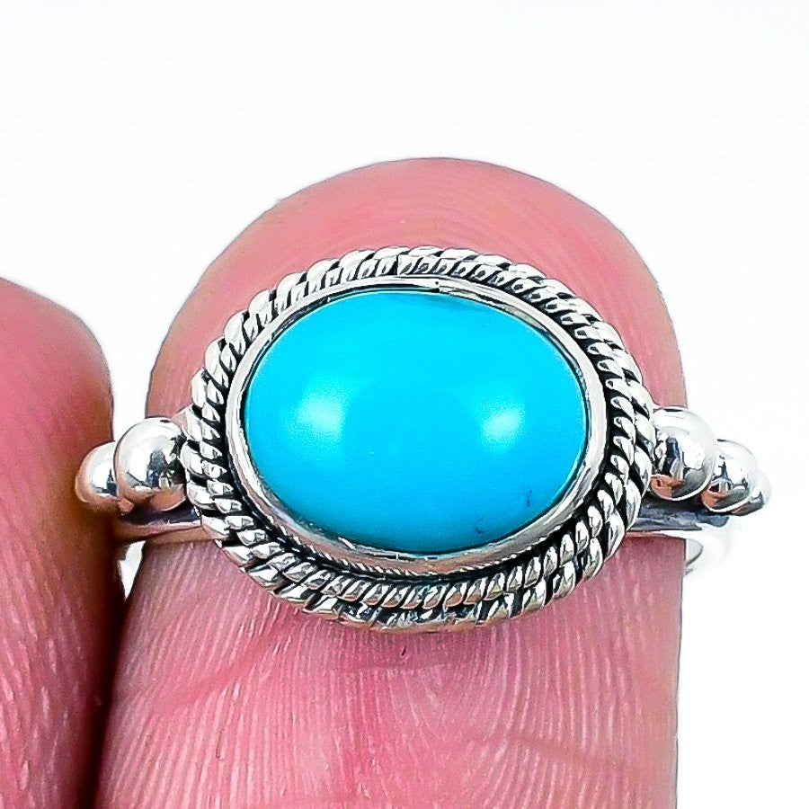 Natural Arizona Turquoise 925 Silver Trendy Handmade Anniversary Boho Band Ring