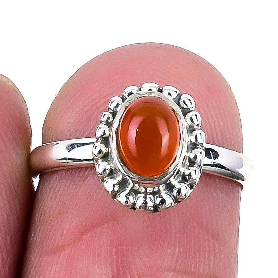 Orange Carnelian Stone Sterling Silver Statement Birthday Ring Jewelry US 5.5