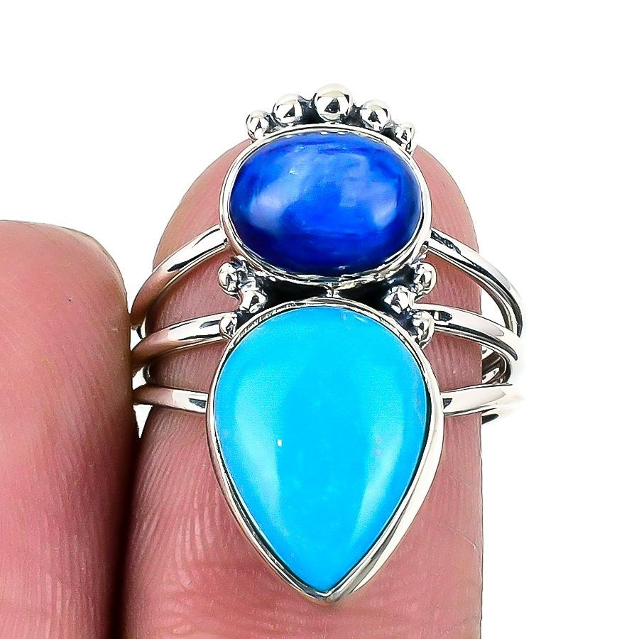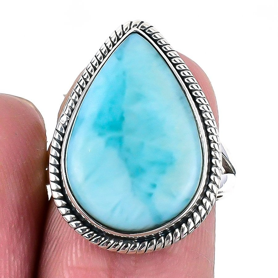 Natural Republic Larimar 925 Sterling Silver Statement Wife Ring Jewelry Size 6