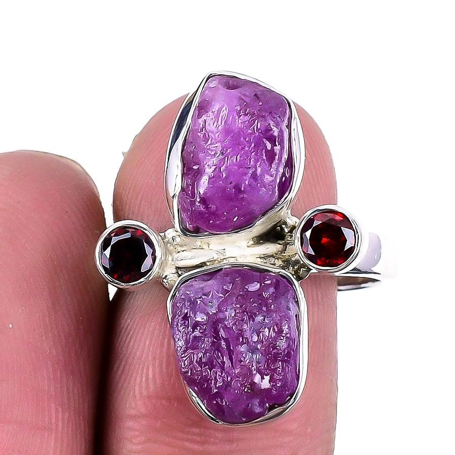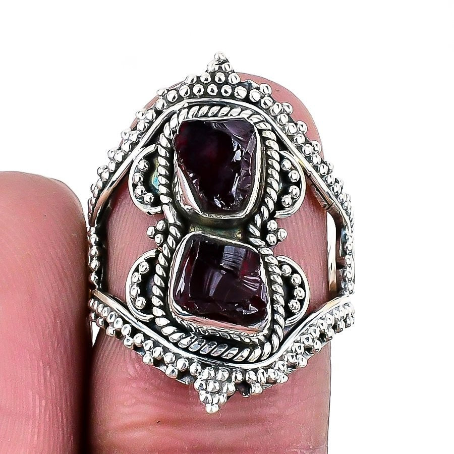 Root Chakra Garnet Rough Gemstone 925�Solid�Silver Statement Ring Jewelry Size 7