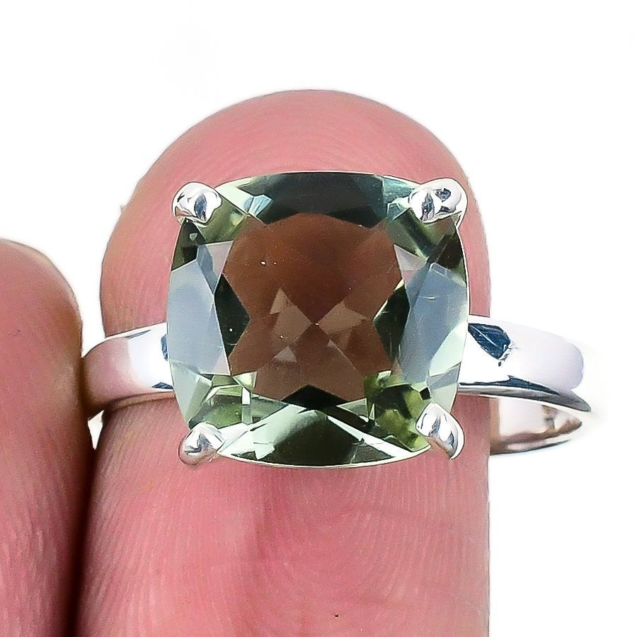 Natural Green Amethyst Sterling Silver Statement Sisters Gift Ring Jewelry US 10
