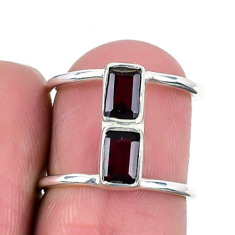 Natural Mozambique Garnet Anniversary Statement Ring Size 5.5 925�Solid�Silver