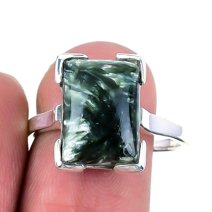 Seraphinite Gemstone 925 Sterling Silver Statement Handmade Ring Jewelry US 10