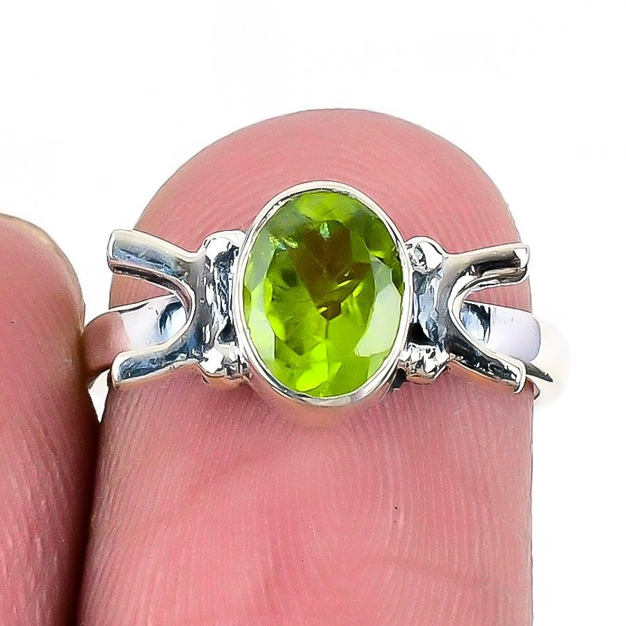 Natural Peridot 925 Silver Birthday Anniversary Engagement Statement Ring US 6
