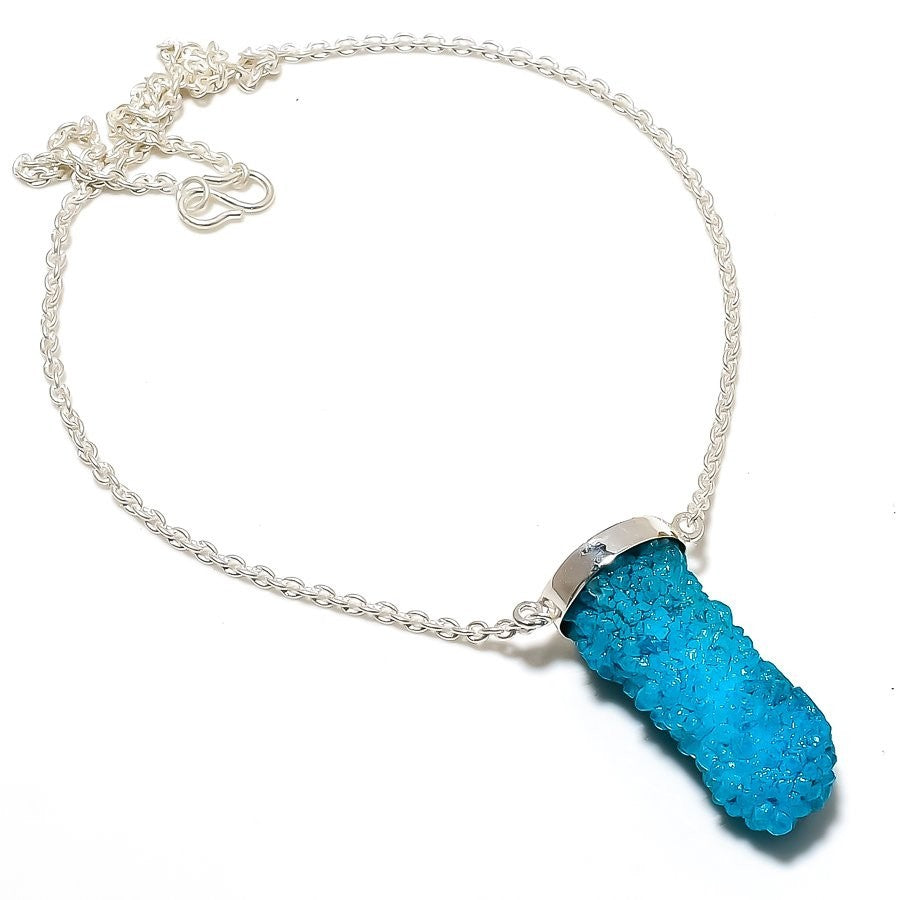 Sisters Day Deal Blue Druzy Stone 925 Sterling Silver Wedding Chain New Necklace