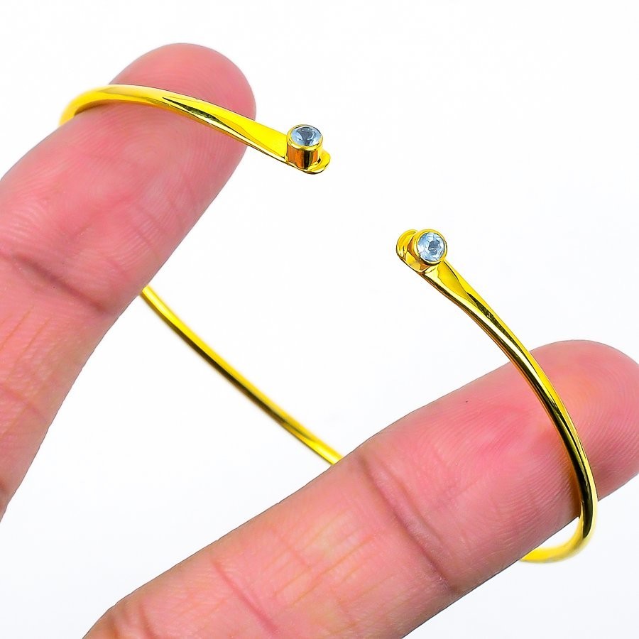 Swiss Blue Topaz Gemstone 925 Sterling Silver Birthday Sisters Gift Bangle Cuff