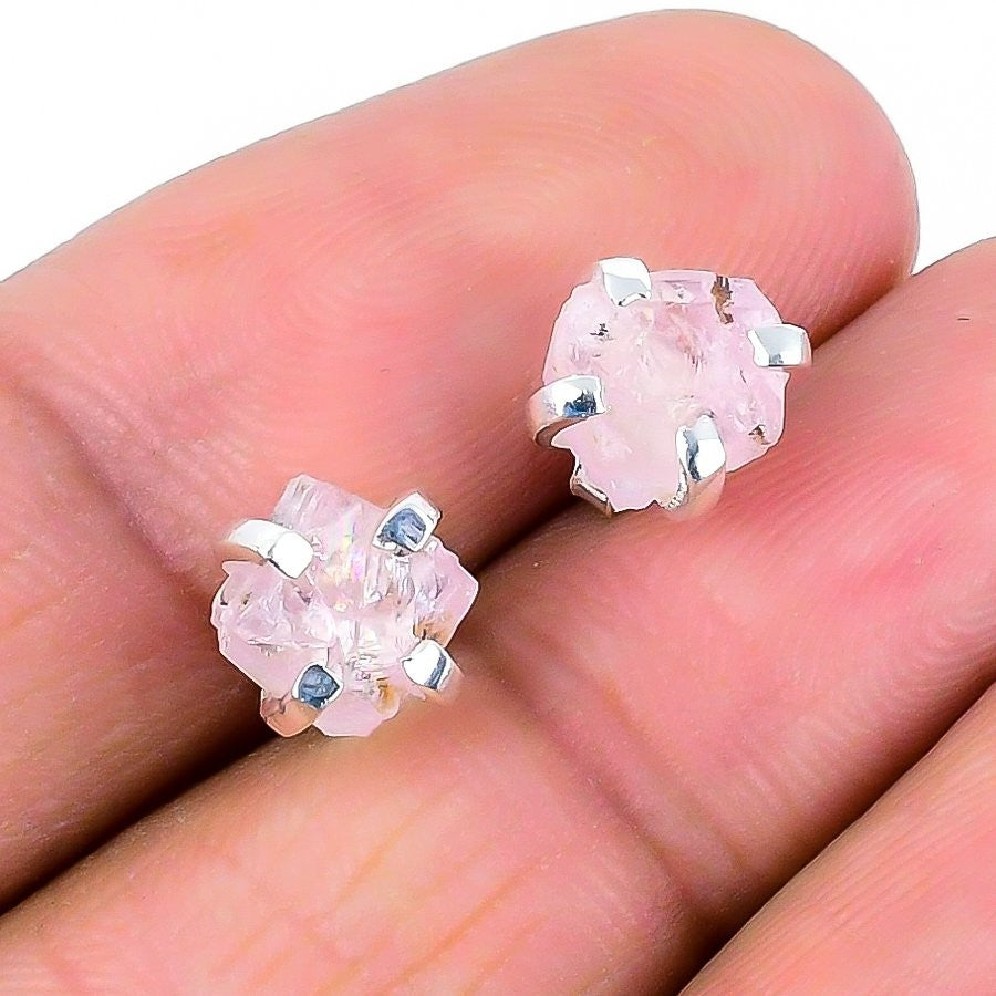 Heart Chakra Rose Quartz Stone Boho Drop Earrings Jewelry Solid Sterling Silver